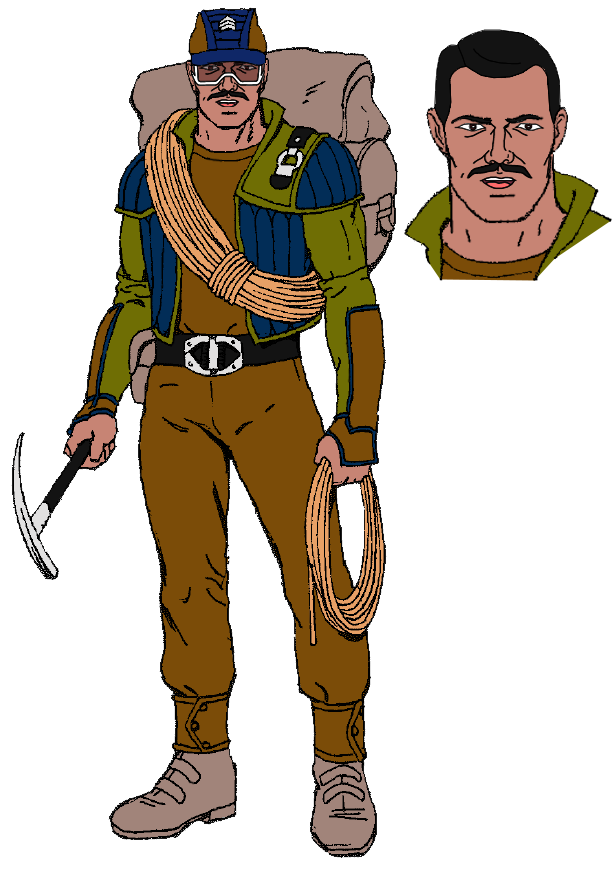 Alpine thrives on challenges. Every obstacle presents itself as a barrier he must overcome. In the flat Snake River Plain where he grew up, the mountains surrounding the area represented such barriers. Barriers that made him feel trapped. To this end, he took up mountain climbing whenever he can, even if it has to be recreational. When that wasn't enough, he joined the army, graduated from Fort Benning's Ranger School and ended up with the G.I. Joe Team. Now, he has one of the toughest assignments. Climbing up towards enemy positions while getting shot at. He's also an excellent accountant.