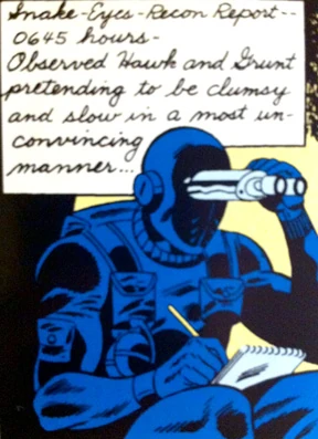 - Hawk has to figure out the bomber's target on his own, and Grunt doesn't seem to know about the second bomb. These would seem to be rather salient pieces of information - if Snake-Eyes didn't pass them on when they "compared notes" earlier, what the heck did he tell them?