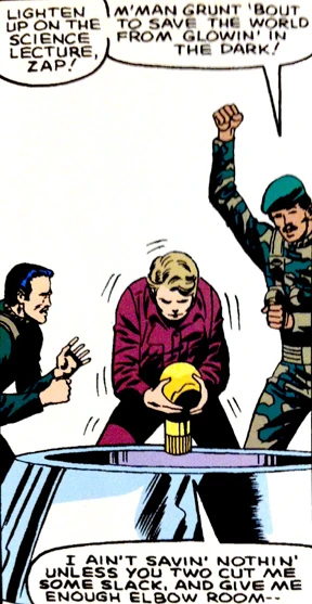 - Whoever the man leading the team on the cover is, he does not appear in this issue.[1]