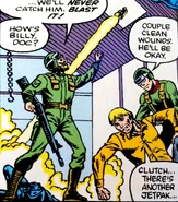 Clutch wakes up tide. He is going to become an experiment for Cobra's latest jetpack technology. Billy reveals his family is being held hostage by Cobra. Before being blasted off, Billy slips a knife inside Clutch's arms. With the test a success and Clutch still high up in the sky, the Cobras remotely shutoff the jetpack thus Clutch is falling to his death. Clutch manages to be free of his ropes and hotwires the jetpack thus gaining control. After that, Clutch goes to rescue Billy's family and contacts the Joe team. The team arrives and shuts down Cobra's operation. A grateful Billy thanks Clutch and offers him to stay with his family for his vacation. Clutch declines citing he's had all the rest and relaxation he can stand.