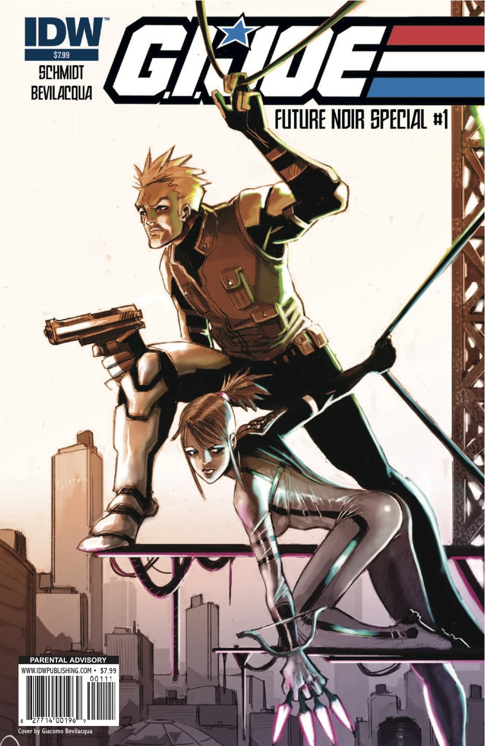 And now, for something different: IDW and Hasbro present an all-new take on the famed soldiers that includes high-explosive action in anime-influenced "future noir" style! Join Duke and Scarlett on this special two-part extra-length adventure as they take their team into a mysterious investigation that's about to turn their world upside down! What is this Cobra cult? And how can it have Japan under its control?
