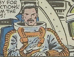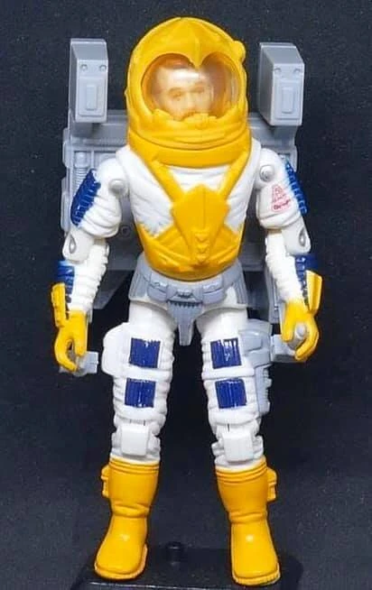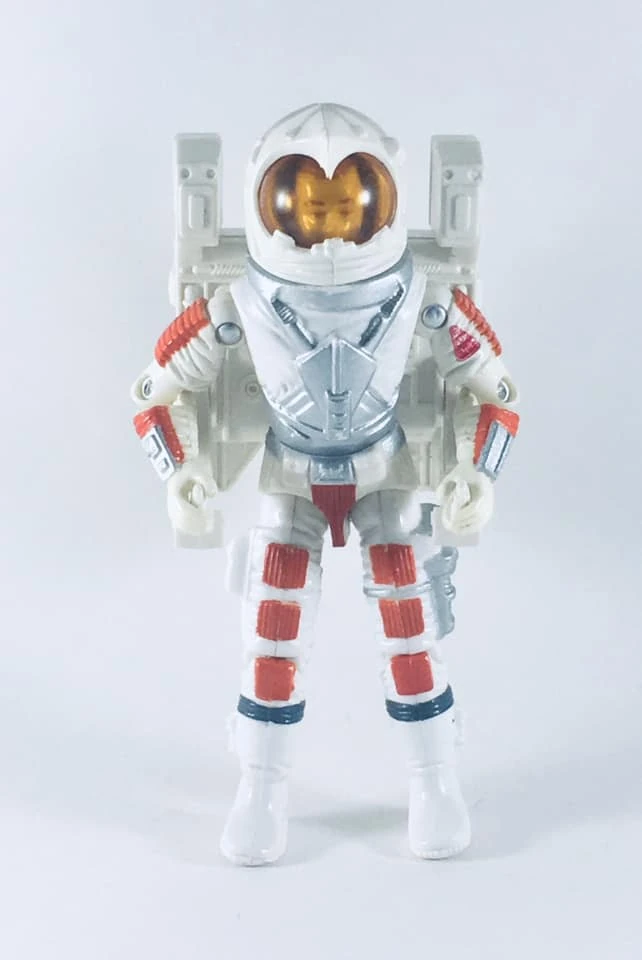 Payload was available in 1987 with the Defiant shuttle. Appearance: red hair and mustache; white spacesuit with silver structural supports and red padding on arms and legs Accessories: white astronaut's helmet with transparent yellow face shield; white Manned Maneuvering Unit backpack and two detachable, white control arms. |