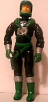 In 1993, Payload joined the Star Brigade subline of A Real American Hero toys. Appearance: green helmet; black shirt with green diagonal straps and gloves; silver wristbands; black pants with green belt and holster; green boots with silver tops Accessories: neon red "Updraft" pistol; neon red "'92 Shockwave" XM-15; neon red "Ambush" submachine gun; neon red "'91 Low-Light" knife; gold "'93 Duke" spring-loaded missile launcher with neon red trigger; two neon red "Law" missiles; neon red figure stand. |
