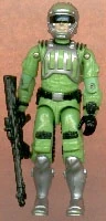 Sci-Fi was part of the 1986 series of A Real American Hero toys. He was among the number of carded action figures sold that year. Appearance: bright green and silver helmet; black visor; bright green shirt and pants; silver vest with green padding; black gloves; silver boots Accessories: bright green backpack with clips on side for rifle; large black XH 86 LLOM beam laser rifle with peg for hose; standard long, black hose. |