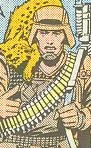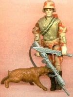 Spearhead and Max were sold as part of the 1988 series of A Real American Hero toys. Appearance: brown hair; light and dark orange camouflage shirt and pants; beige vest with gold ammo belt; brown boots Accessories: light and dark orange camouflage helmet with long brim; orange pouch backpack with roll; grey machine gun with bayonet and sling; grey machete with decorative markings on blade; orange bobcat named Max. |
