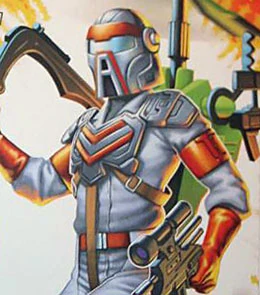 Specialist Trakker was part of the 2008 series of A Real American Hero toys. Appearance: blonde hair; gray jumpsuit with red kneedpads, belt and stripes on the arms; red gloves; gray boots with red straps. Accessories: green helicopter backpack; black blade; black spindle; black mounted machine gun; black control stick; black sub-machine gun; grey armor with brown straps and red stripes on the chest; grey mask with silver eyes and red band on forehead; black display stand |