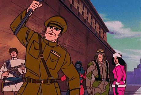 Laughing at Horrorshow, Gung-Ho tells him that he still thinks the Russian soldier is "a dumb Russian bear." But Horrorshow laughs and repeats his opinion of Gung-Ho: "Uuugly!" The two laugh at their differences and after the Joes shout "YO JOE," the Russians then shout, "Nu Pagodi!"