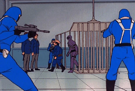 As the Joes are lead to the stockade, Gung-Ho antagonizes Horrorshow and knocks the Russian soldier to the ground. Immediately recognizing the distraction, the Joes swiftly disarm and capture their Oktober Guard captors. And as Snake Eyes holds Daina, she calls him an "Americanski devil."