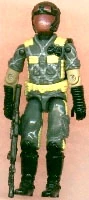 In 1989, Vipers were recruited to the Python Patrol. Appearance: black helmet with red goggles and faceplate; dark grey short-sleeved shirt with light grey crisscross pattern; yellow straps, belt, and stripes on sides of legs; dark grey pants; black gloves and boots Accessories: black "Viper" backpack; black "Viper" assault rifle. |