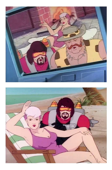 In the episode The Nozone Conspiracy she appears alongside Cobra Commander, Metal-Head and Gnawgahyde promoting a Cobra sun-cream.